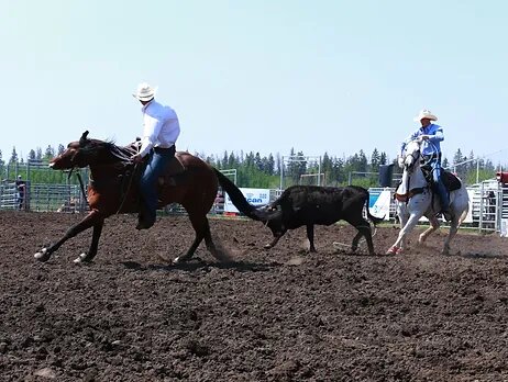 Where you have a header and a healer. The steer gets a head start out the gate and they work as a team to catch the head and heels of the steer. Fastest time in each event wins.